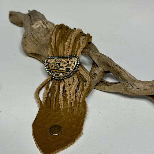 LEOPARD SKIN JASPER AND STERLING SILVER MULTI STRAND LEATHER BRACELET WK89