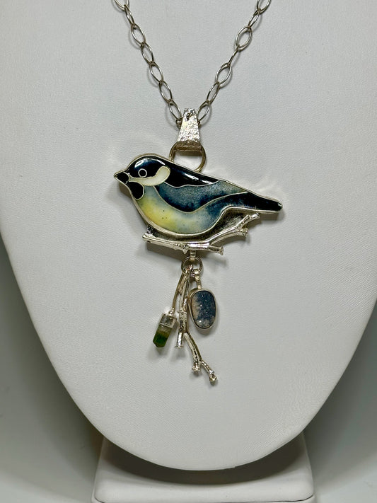 ENAMEL BIRD PENDANT WITH MIXED MEDIA NECKLACE WK47