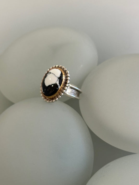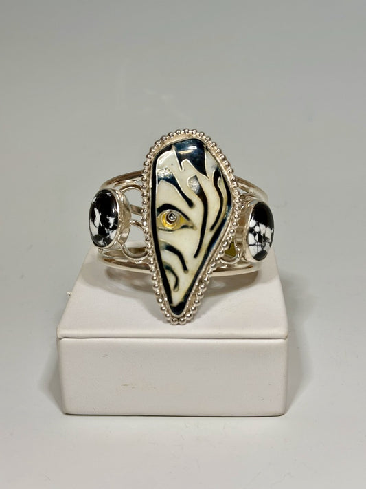 ZEBRA CLOISONNE´ AND WHITE BUFFALO ADJUSTABLE CUFF WK48
