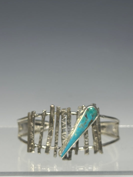 STICK STERLING CUFF WITH TEAR DROP TURQUOISE WK96