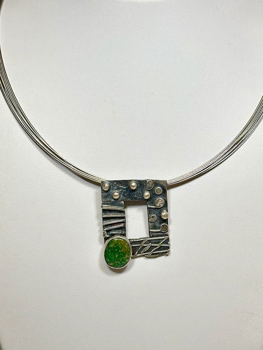 GREEN TURQUOISE FUSED STERLING SILVER RECTANGLE NECKLACE WK50