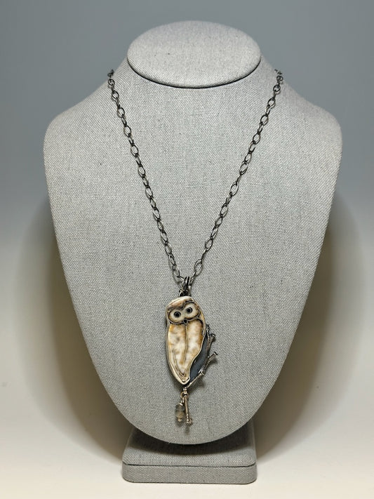 OWL CLOISONNE´ PENDANT ON OXIDIZED STERLING SILVER CHAIN NECKLACE WK56