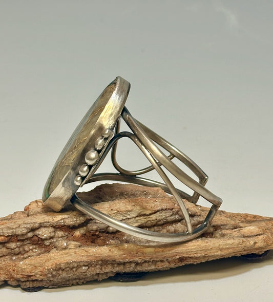 RIBBON TURQUOISE AND STERLING SILVER CUFF WITH SIDE BALL DETAIL WK63
