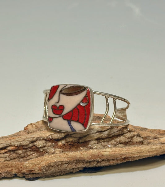 RED HEAD CLOISSONE´ AND STERLING SILVER CUFF WK64