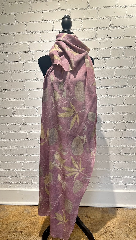 Luxurious 100% fine wool pashmina shawl, han dyed with natural dyes and real leaves, is one of a kind. this incredibly soft handwoven shawl is both warm and lightweight