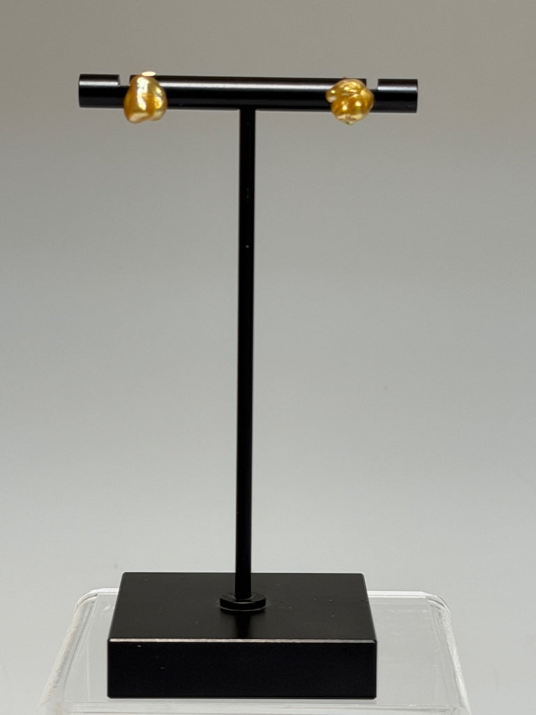 18K YELLOW GOLD GOLDEN SOUTH SEA KESHI PEARL STUD EARRINGS AV2634