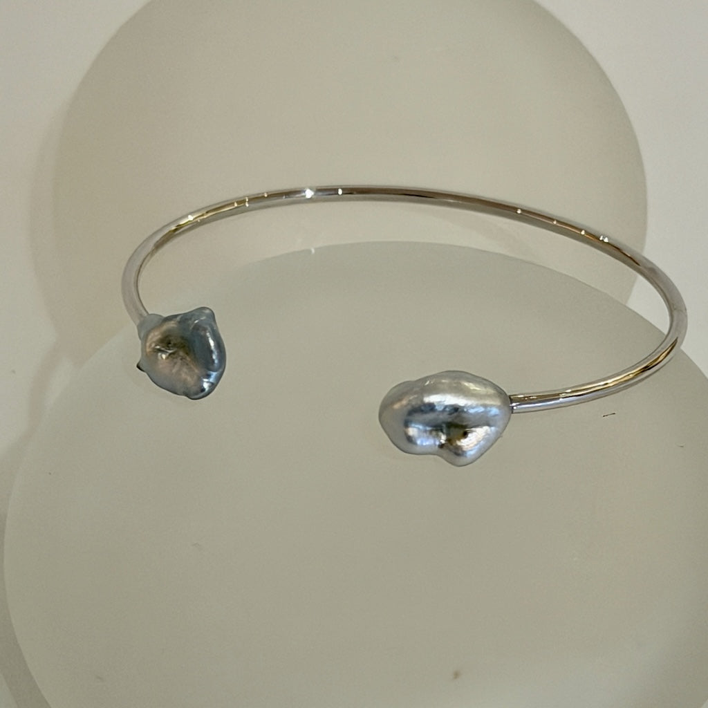 18K WHITE GOLD TAHITIAN KESHI PEARL BANGLE BRACELET AV2622