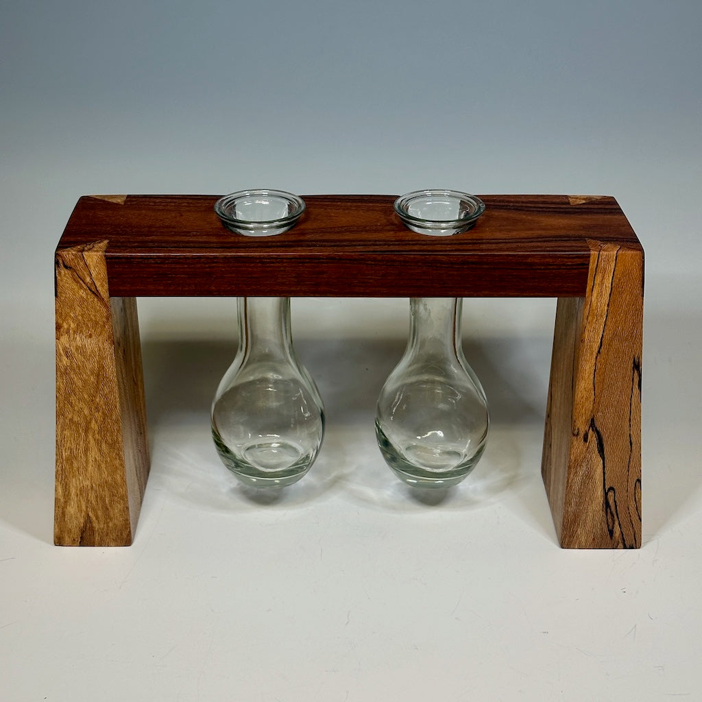 2 GLASS WOODEN BUD VASE HOLDER WITH ROSEWOOD AND SYCAMORE