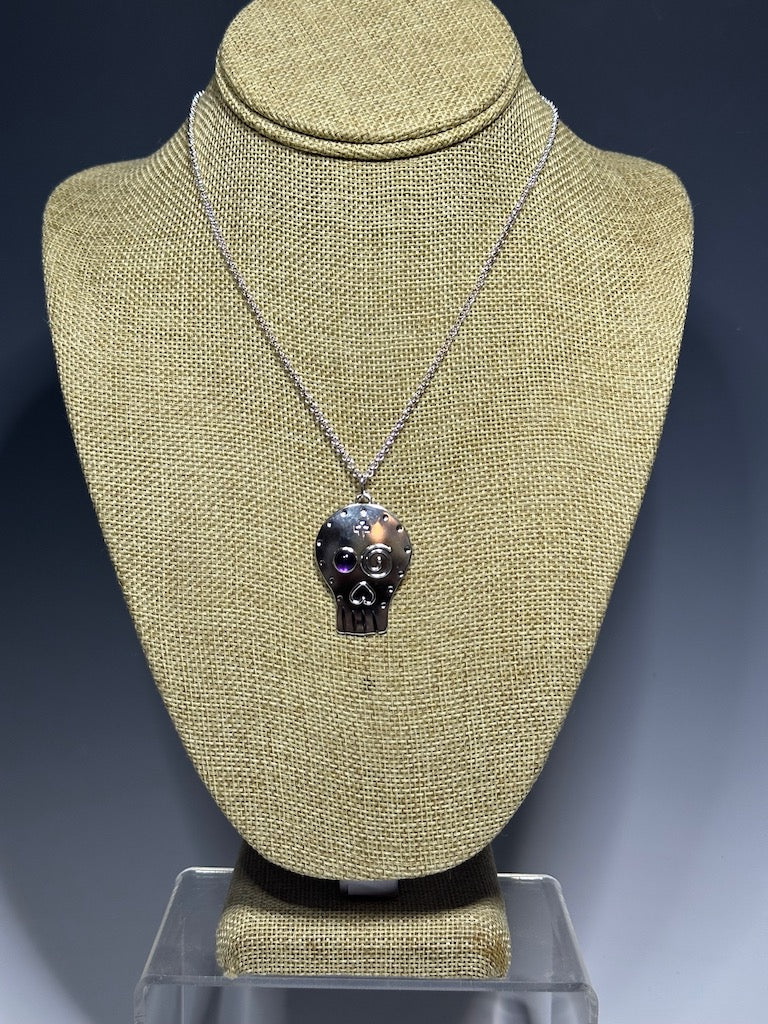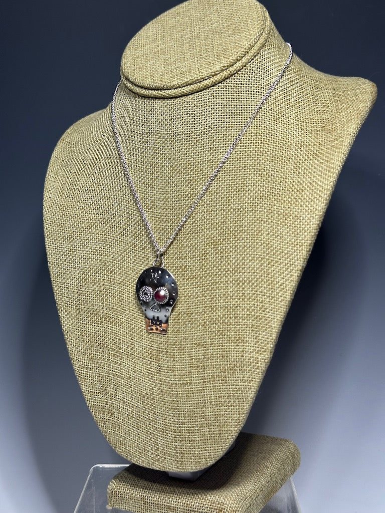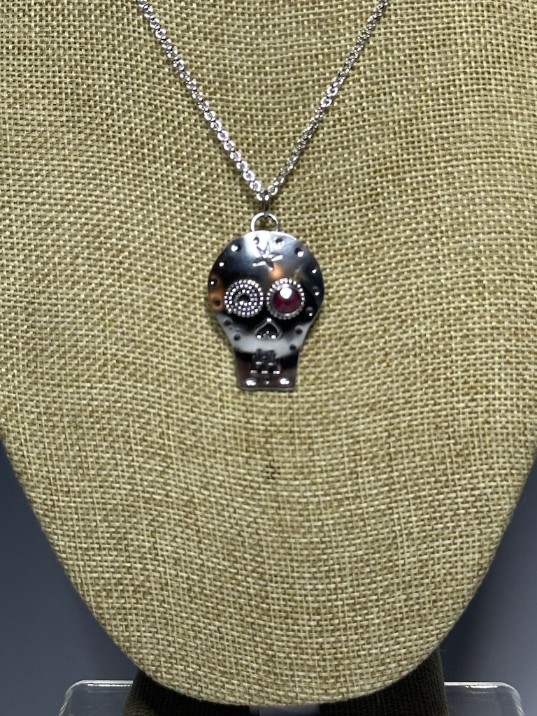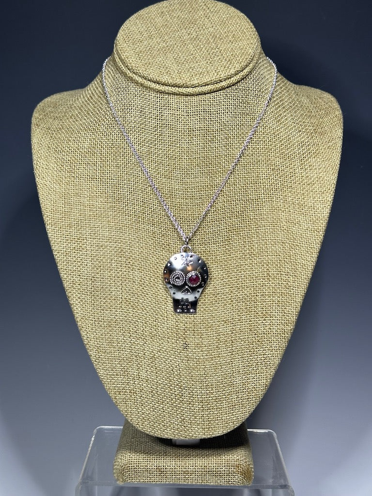 .925 SUGAR SKULL STAR W/GARNET PENDANT NECKLACE BR373