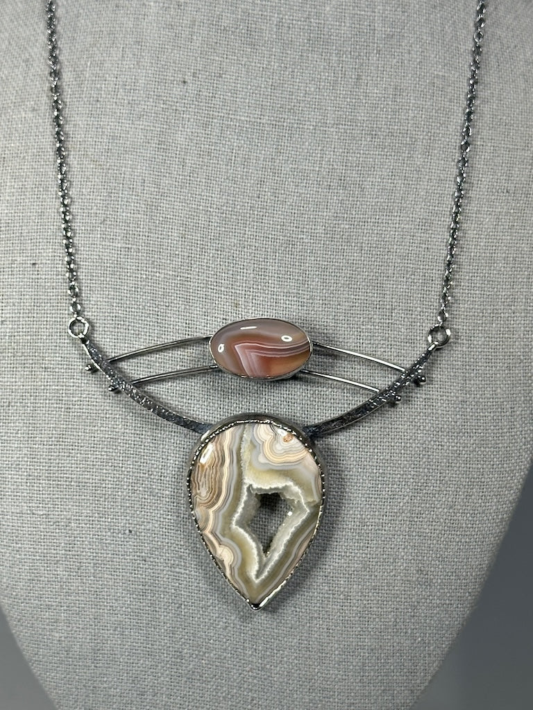 .925 JOVIE CHOKER WITH DRUSY LACE AGATE, PINK BOTSWANA AGATE BR504