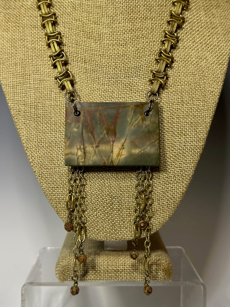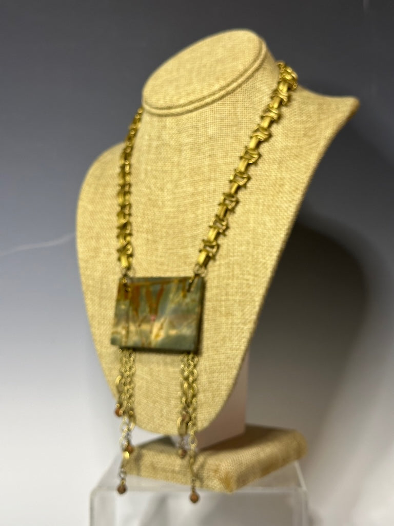 LANDSCAPE JASPER AND BRASS STATEMENT NECKLACE LCN700