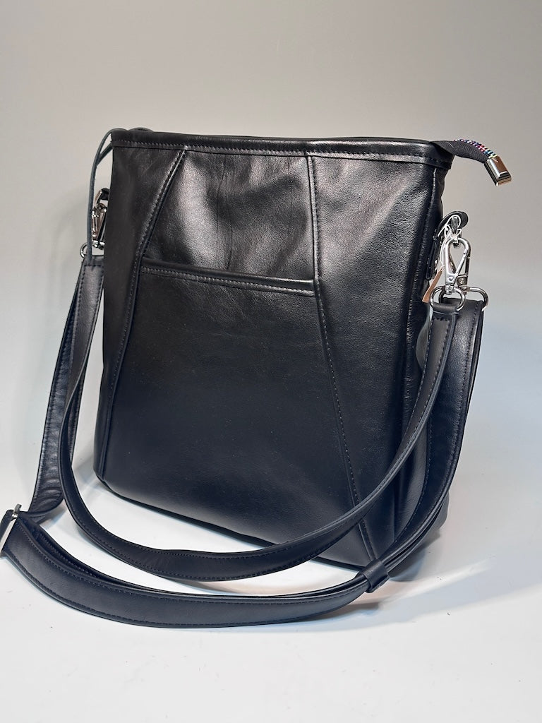 ABSTRACT TOTE IN BLACK LEATHER NH168