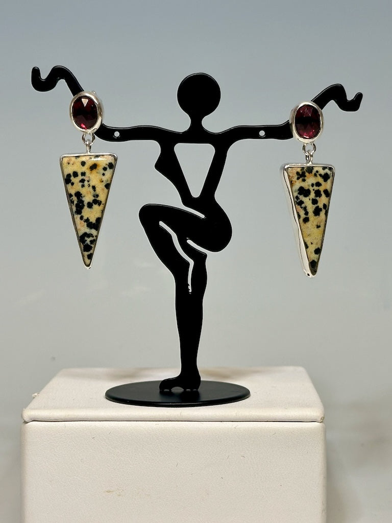 GARNET AND DALMATIAN JASPER Sterling Silver Earrings NM573E