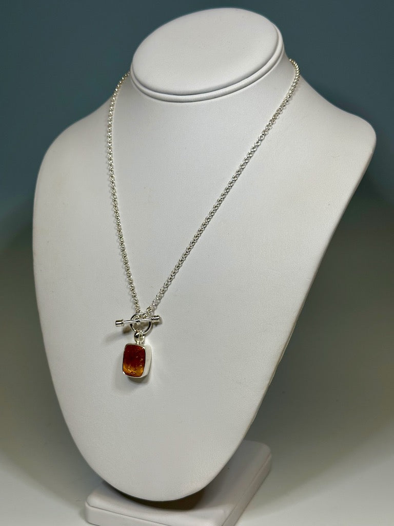 IMPERIAL TOPAZ STERLING SILVER NECKLACE WITH MANDARIN GARNET TOGGLE - NM572N