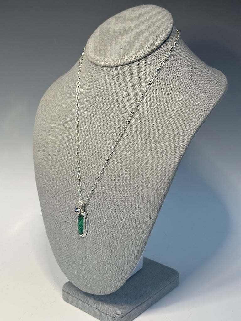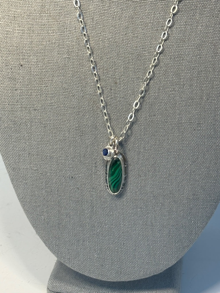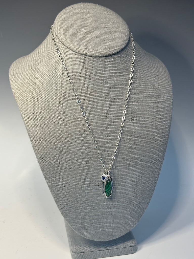 MALACHITE AND KYANITE STERLING SILVER NECKLACE - NM604