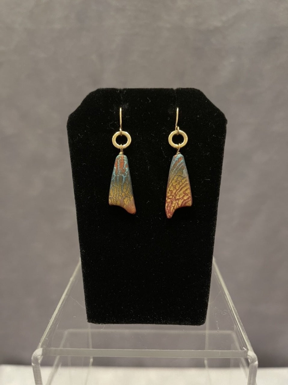 Oblong Triangular Earrings with bronze Circles and Wires PCE218