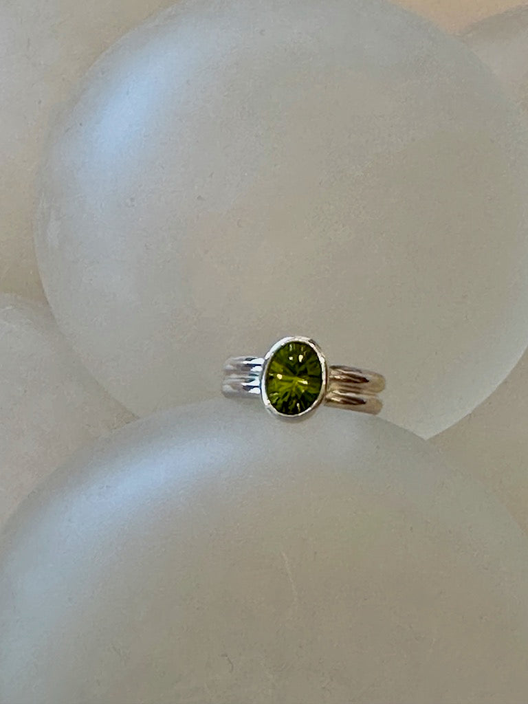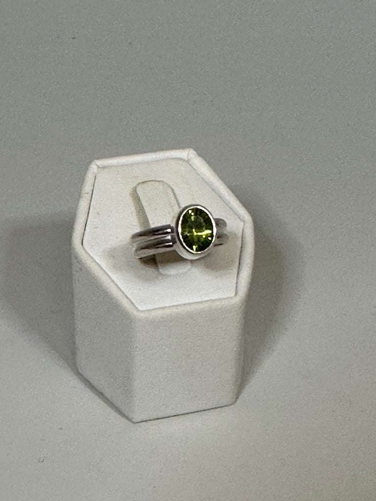 FANCY CUT PERIDOT RING SET IN STERLING SILVER NM569R