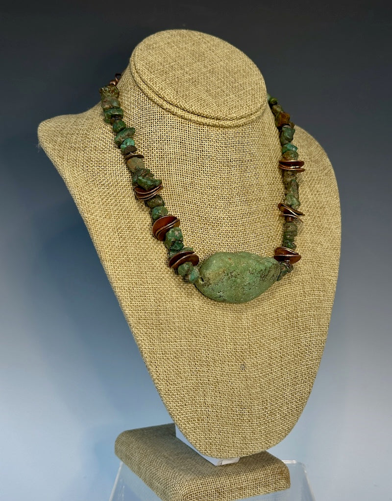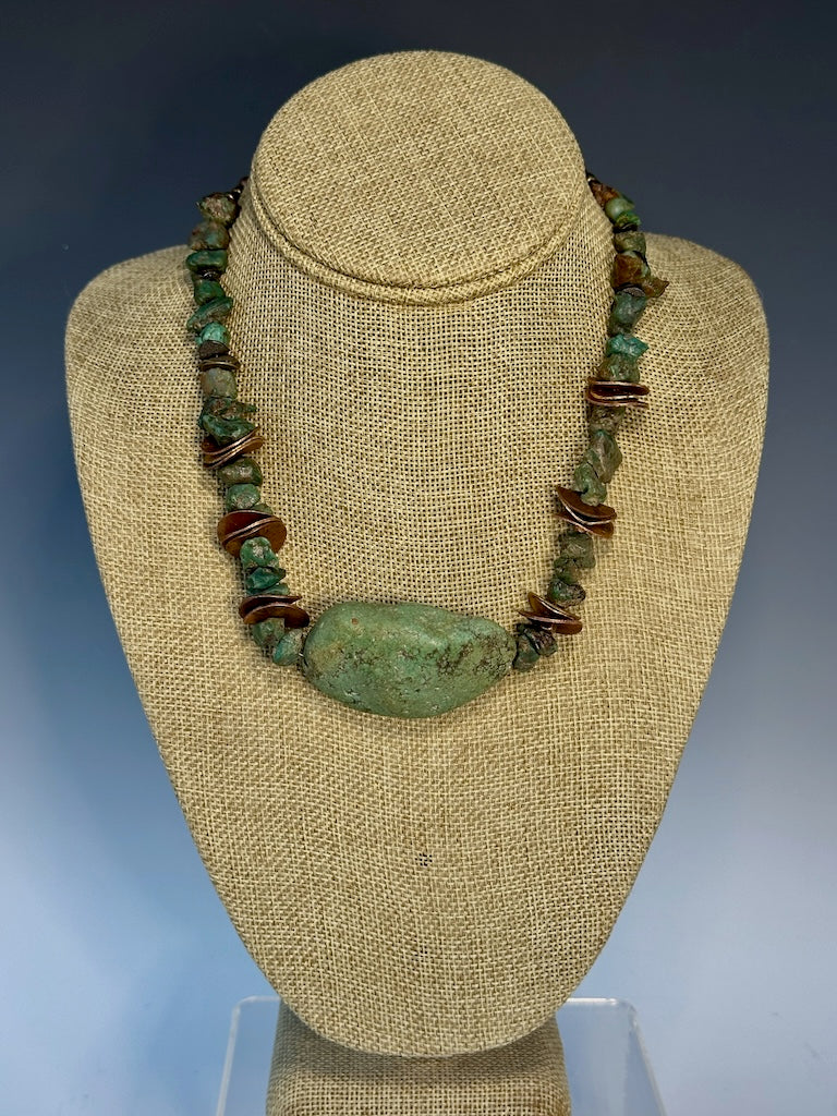 ROUGH CUT NATURAL TURQUOISE STATEMENT NECKLACE WITH TORCHED COPPER LCN922