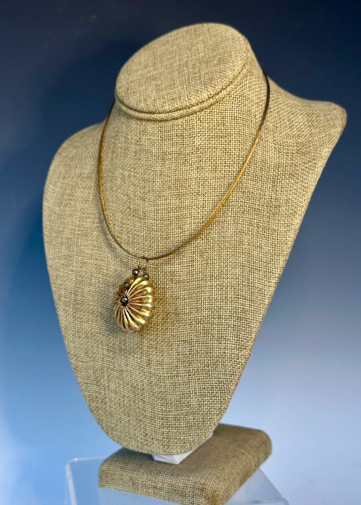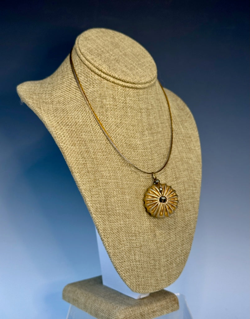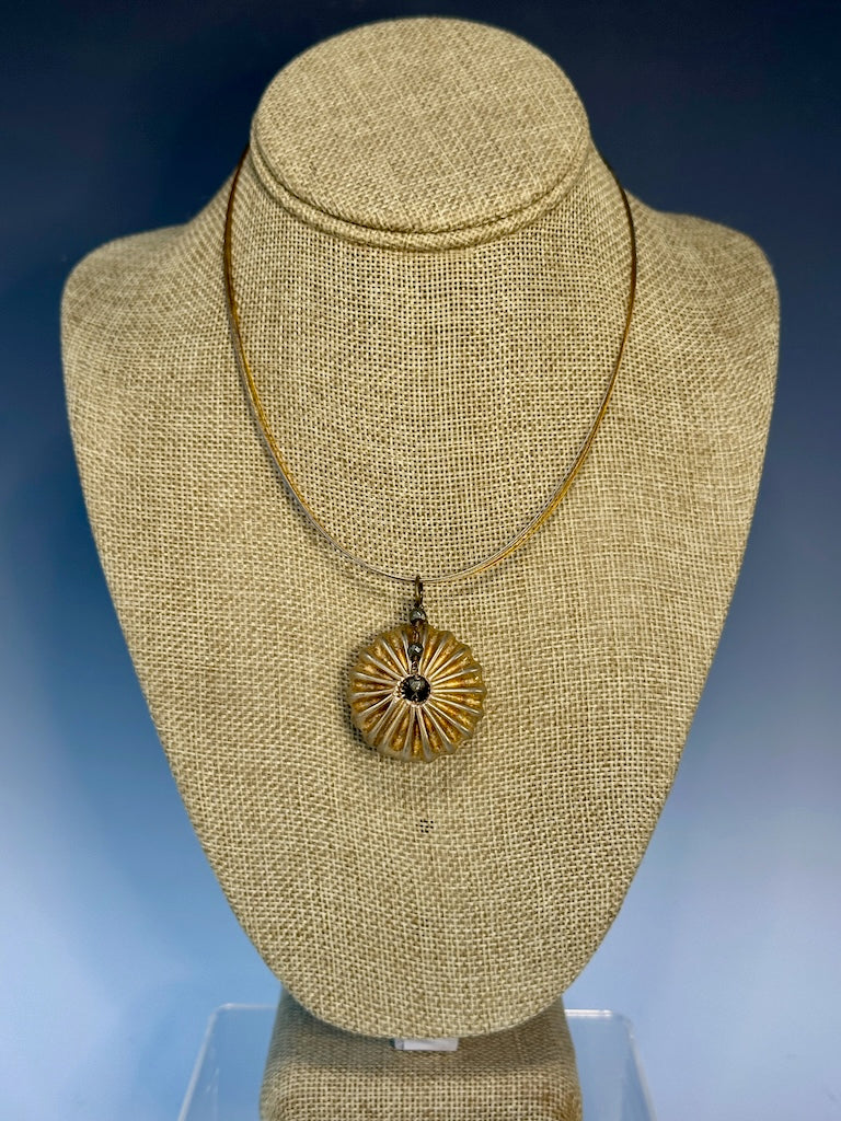 BRASS FOCAL BEAD PENDANT NECKLACE WITH PYRITE LCN917