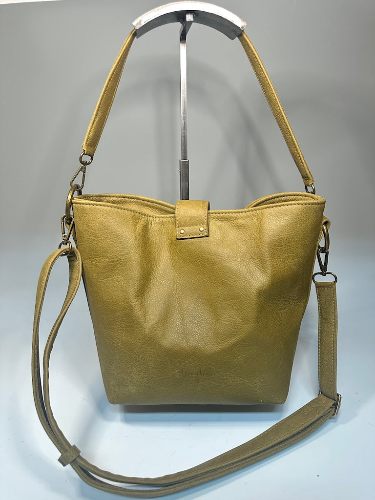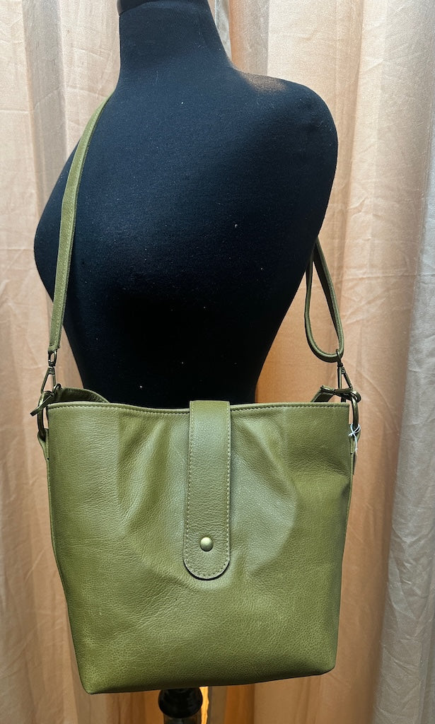 BUCKET BAG, OLIVE LEATHER HANDBAG NH180
