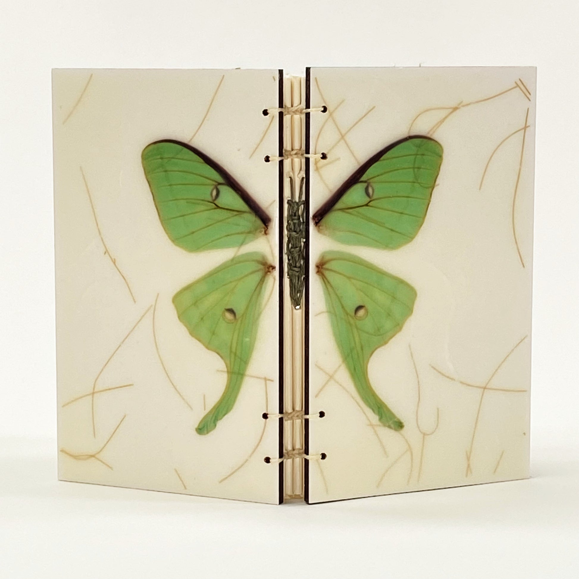 LUNA MOTH JOURNAL BOOK - ENCAUSTIC BEESWAX COVERS AND HANDMADE BINDING