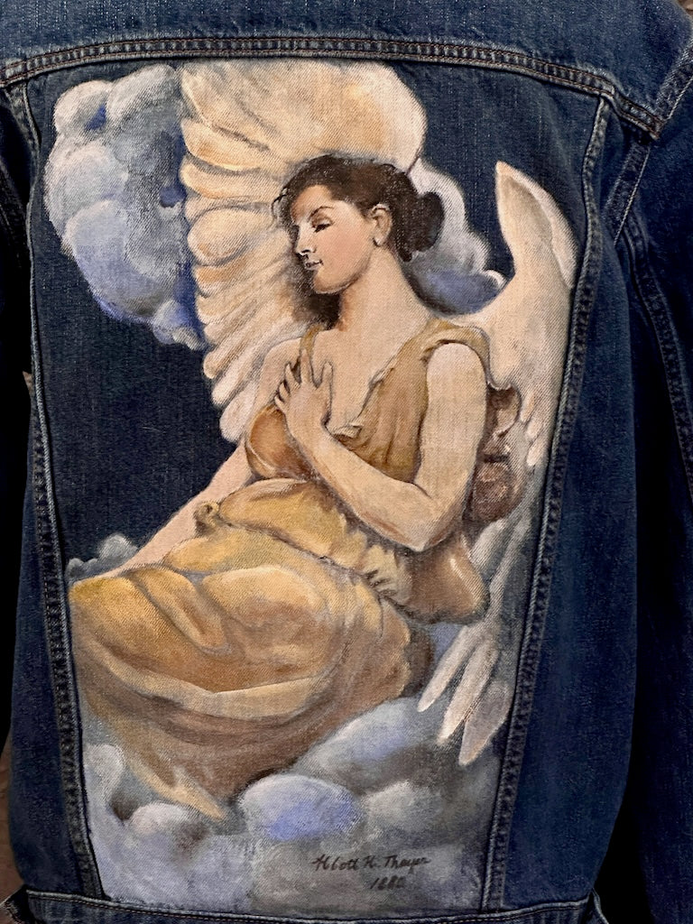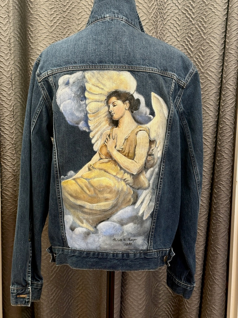 "THAYER SEATED ANGEL" HAND PAINTED JEAN JACKET FM10