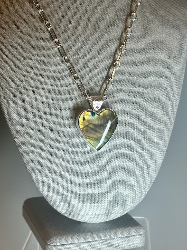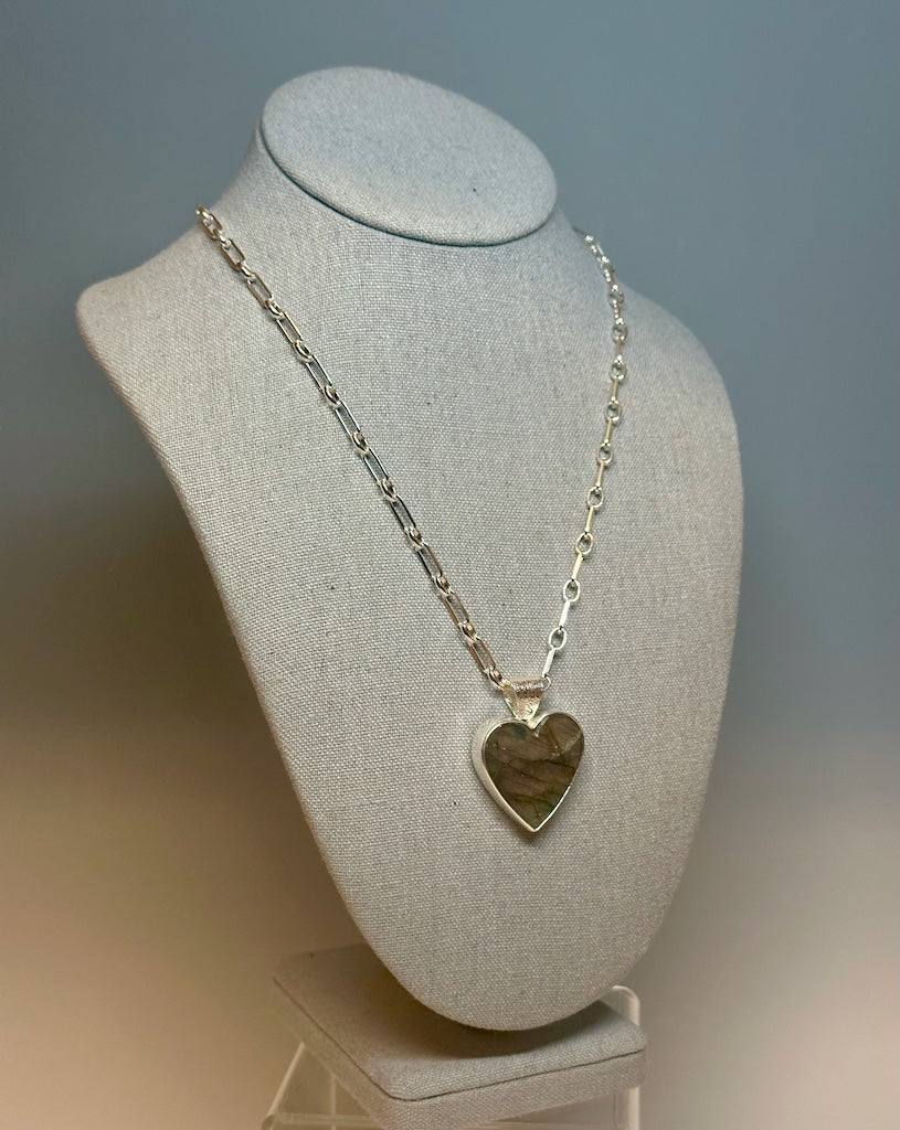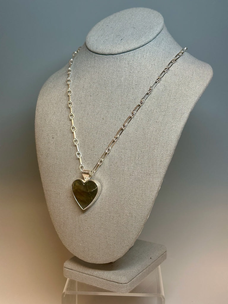 LARGE LABRADORITE HEART NECKLACE WITH STERLING SILVER CHAIN NM619N