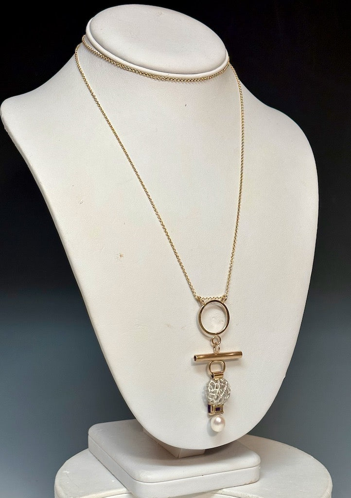 14K with Sterling Silver Bead Necklace with Amethyst and Pearl MB165N