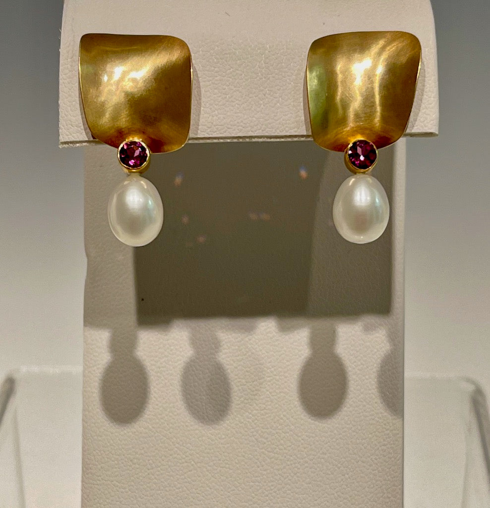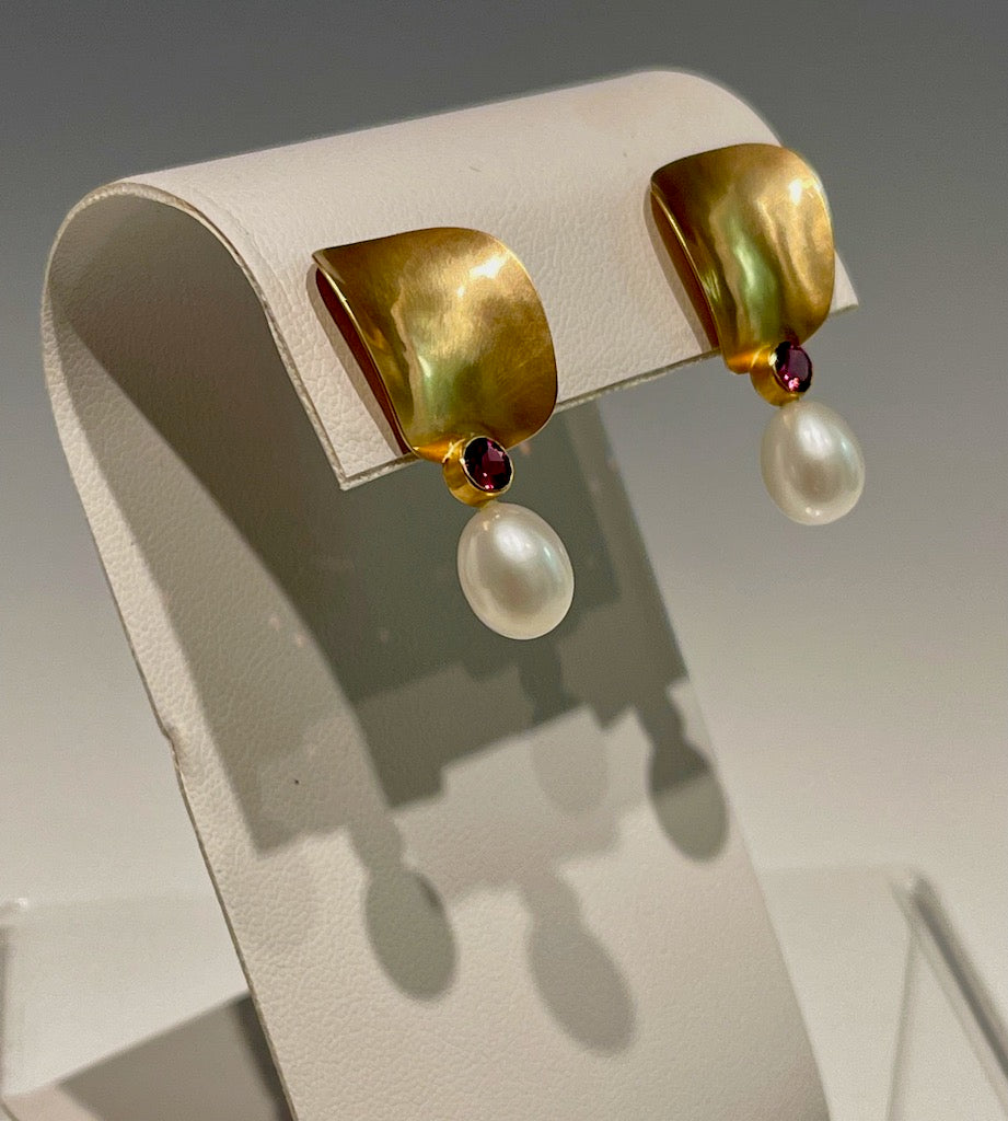 14K Gold Cuff Earrings with Garnet and Pearls MB142