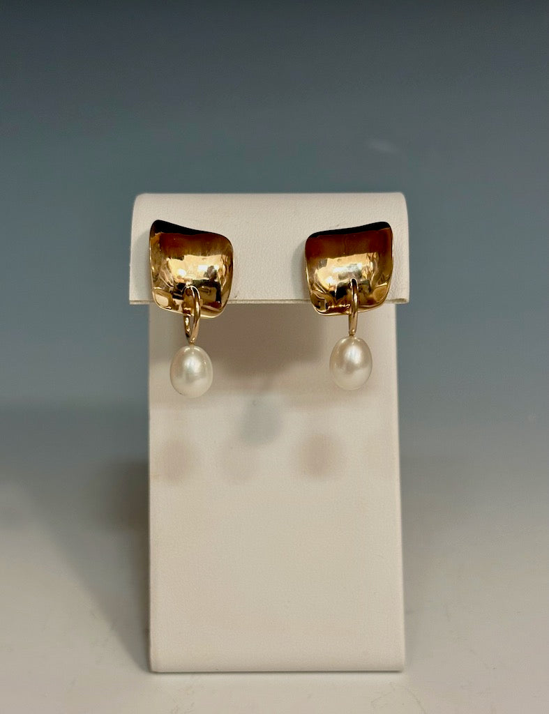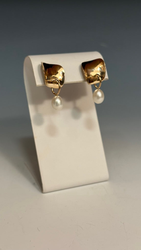 14K GOLD HOOPIE WITH PEARL EARRINGS MB172E