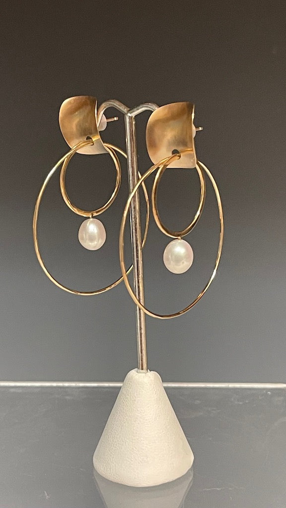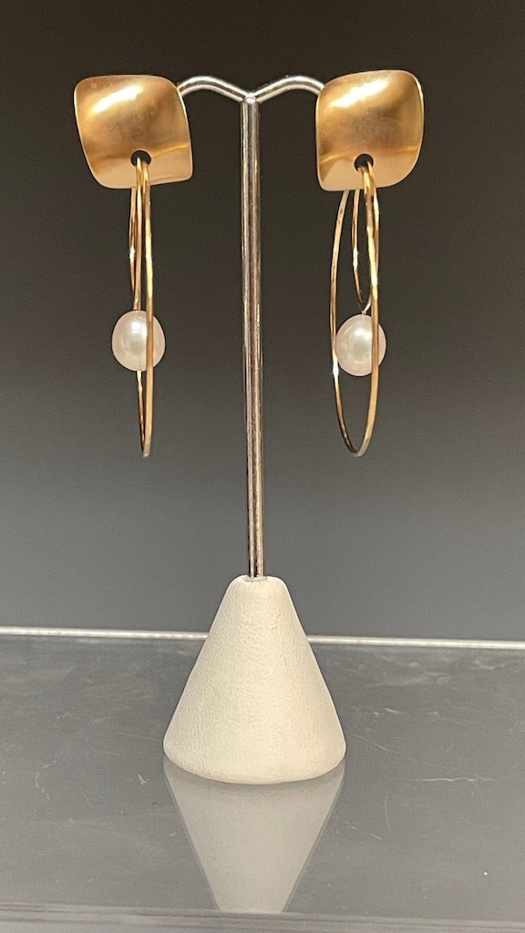 14K HOOPIE EARRINGS WITH PEARLS MB162E