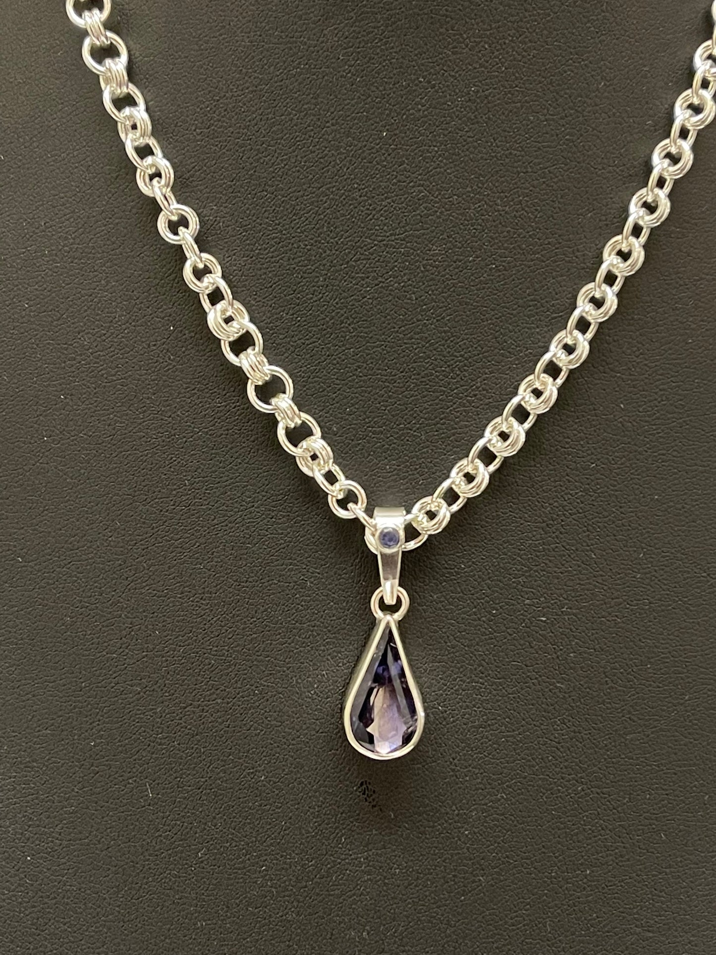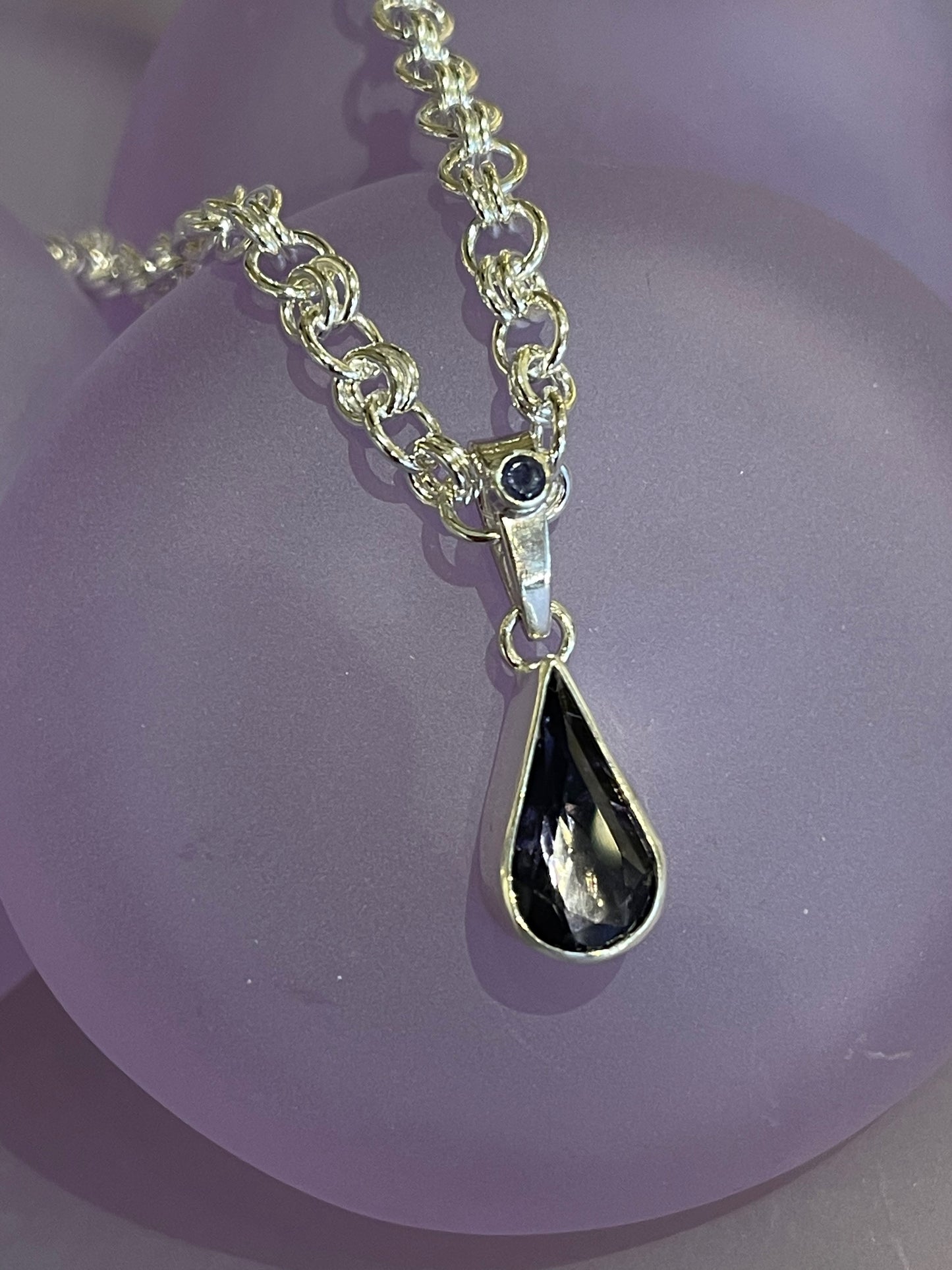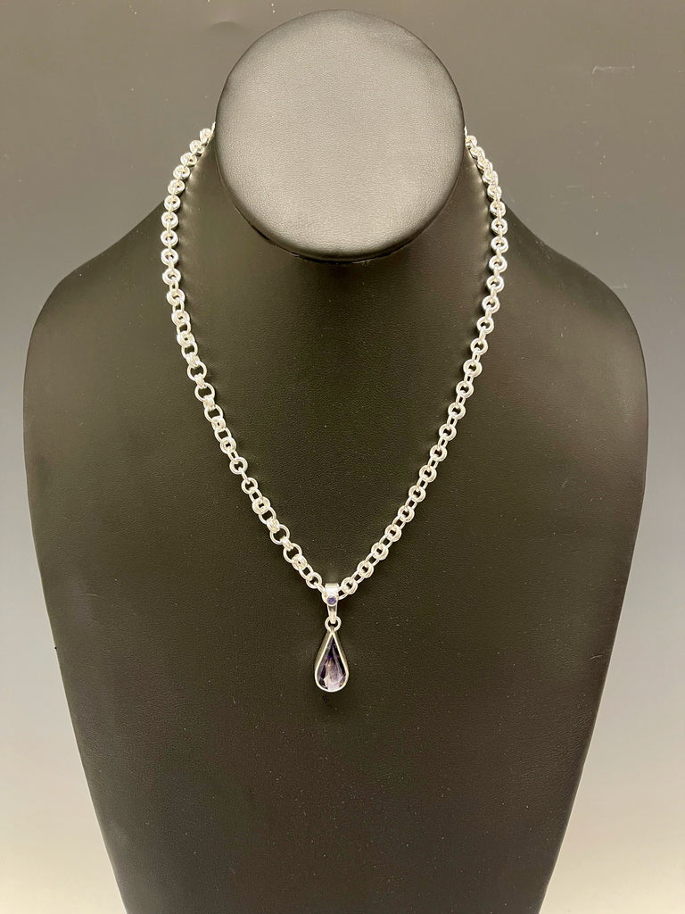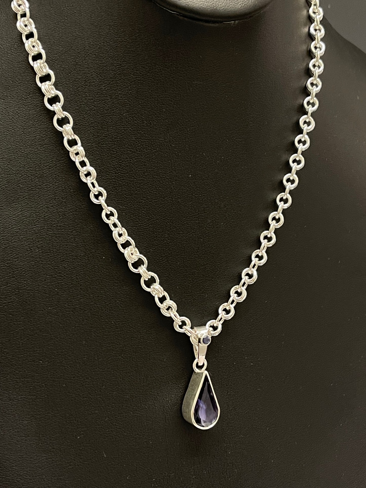 Pear Shaped Iolite Pendant Necklace with Sterling Silver Handmade Chain NM296N