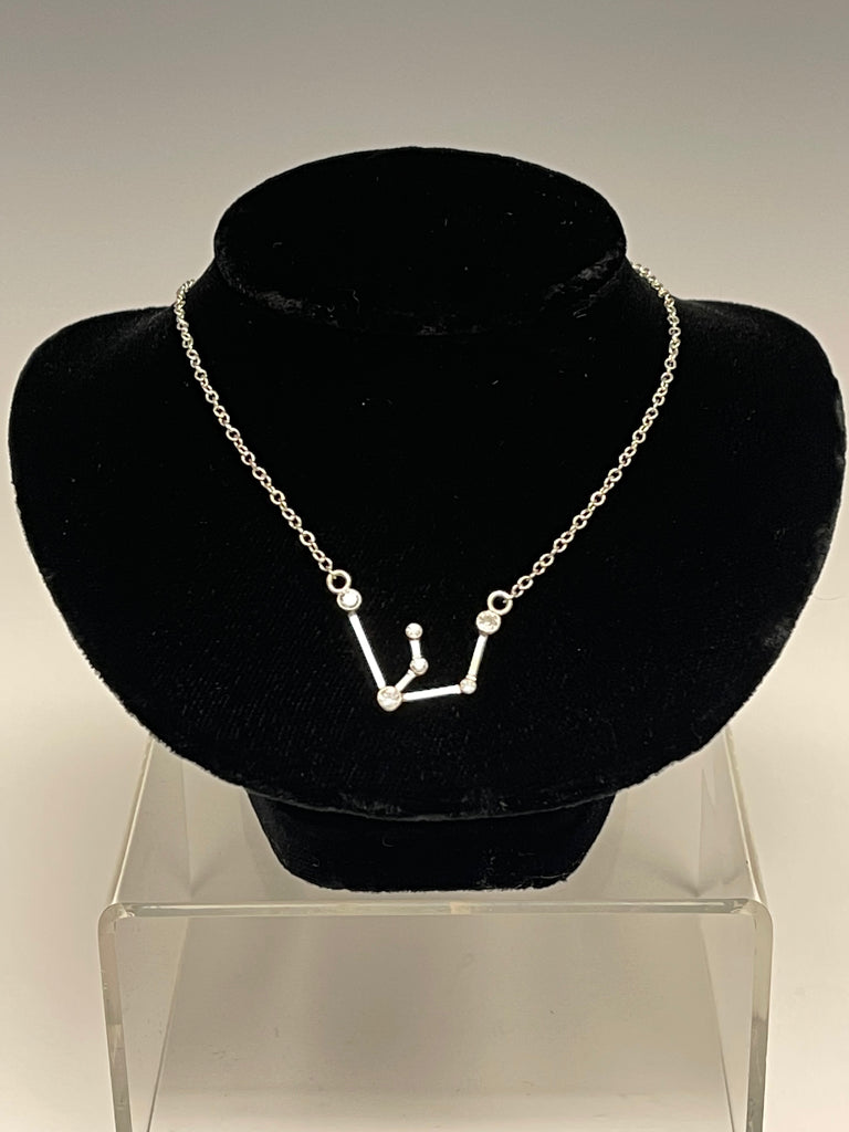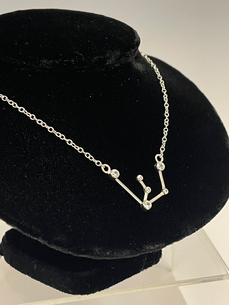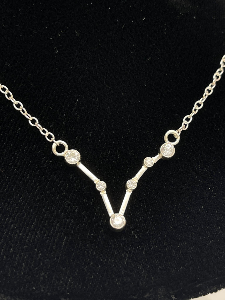 Aquarius Pendant with White Zircon and Sterling Silver Necklace