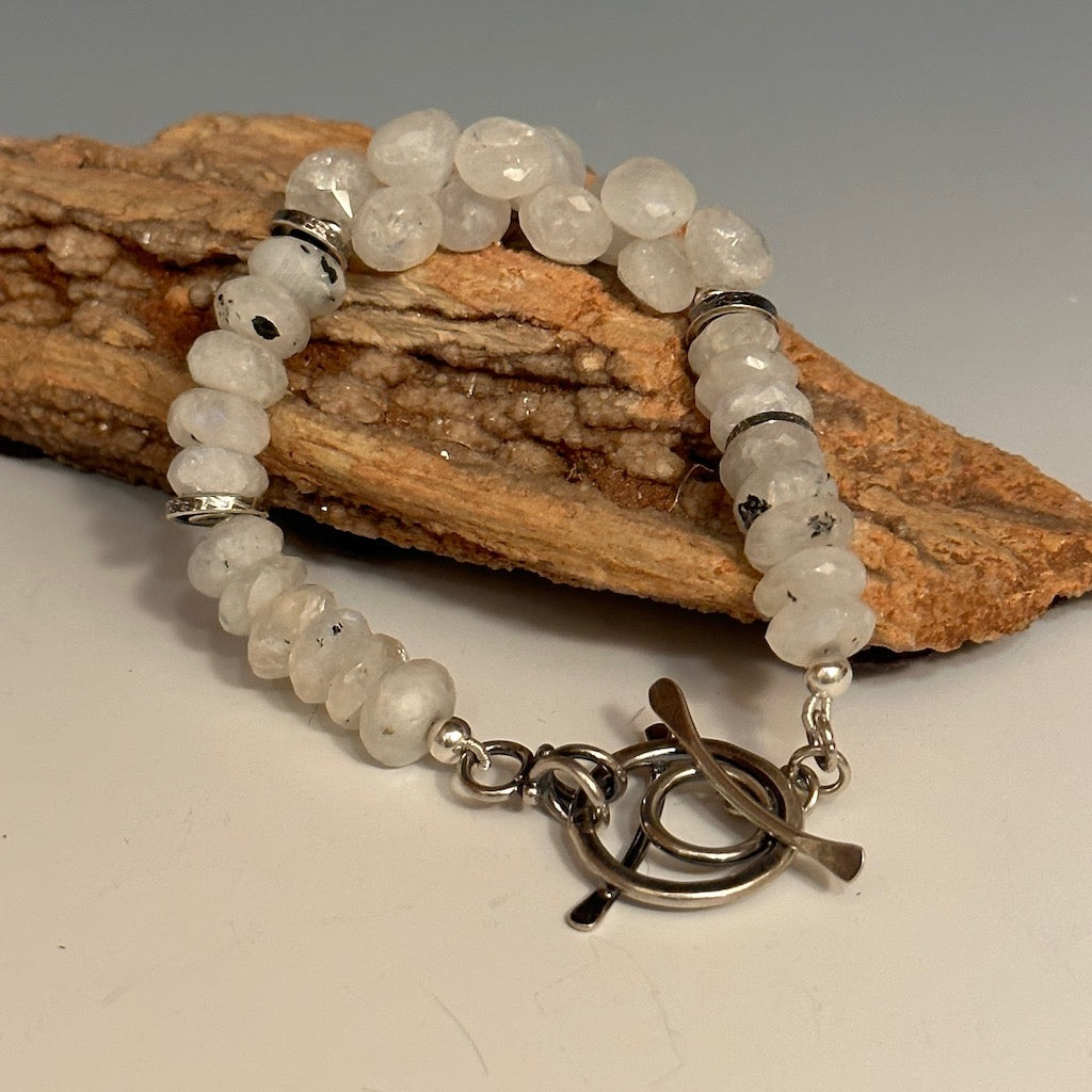 BLACK TOURMALINE RAINBOW MOONSTONE BRACELET WITH STERLING TOGGLE BR195