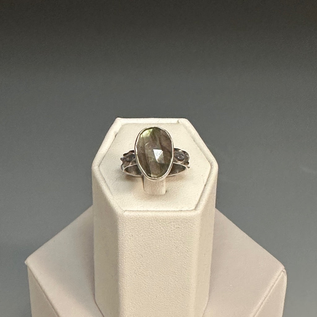 .925 GREEN LABRADORITE DUKE BAND RING BR198