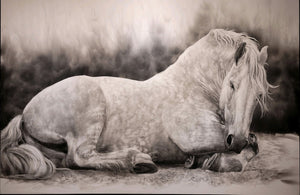 "THE RESTING BELGIAN Original Fumage Drawing on Clay Board/Framed