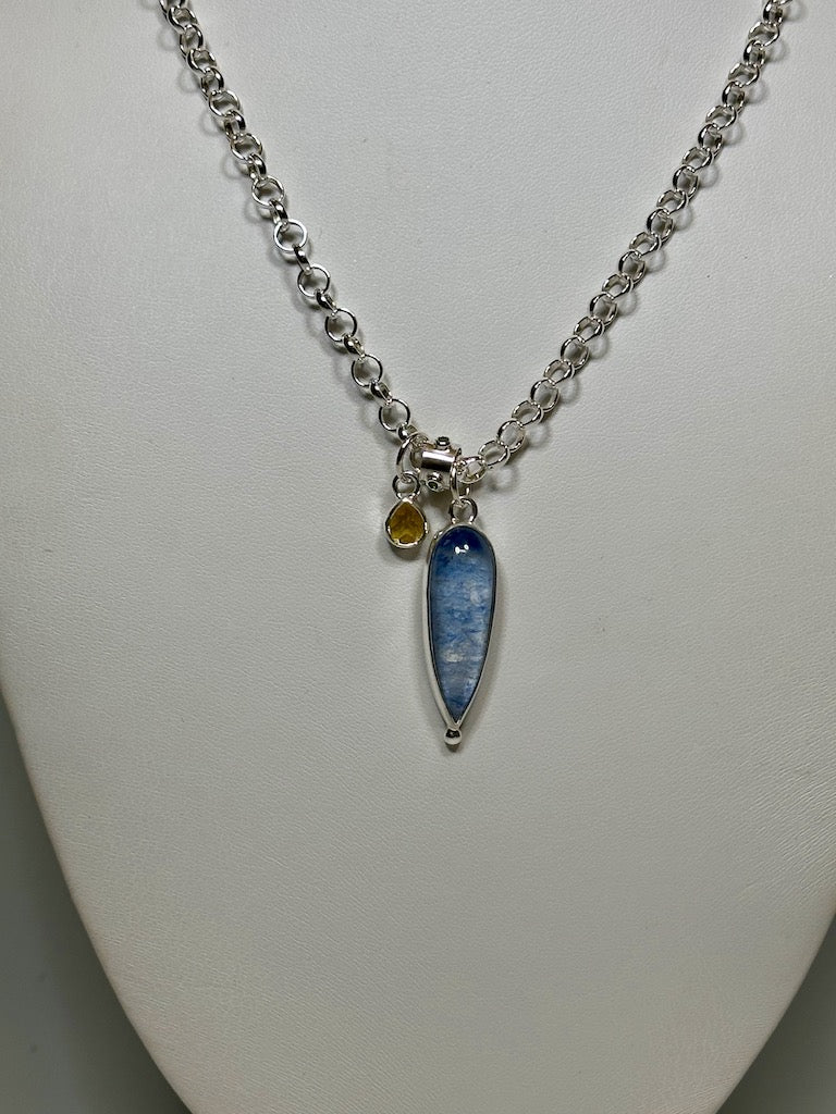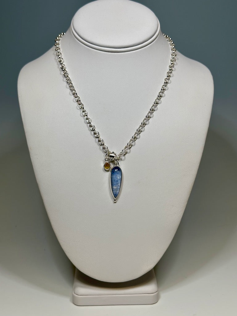 DUMERTIERITE, KYANITE AND GOLEN TOURMALINE STERLING SILVER CHARM NECKLACE - NM553N