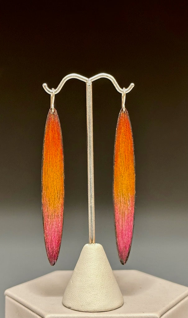 RED ELIPSE PRISMA COLOR EARRINGS ON STERLING SILVER WIRES DKA153