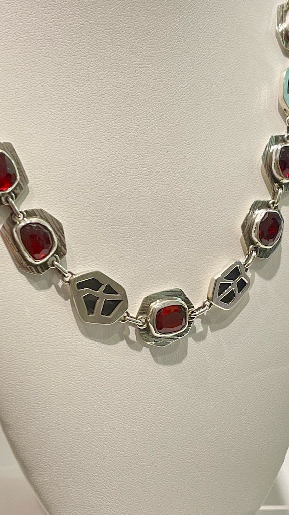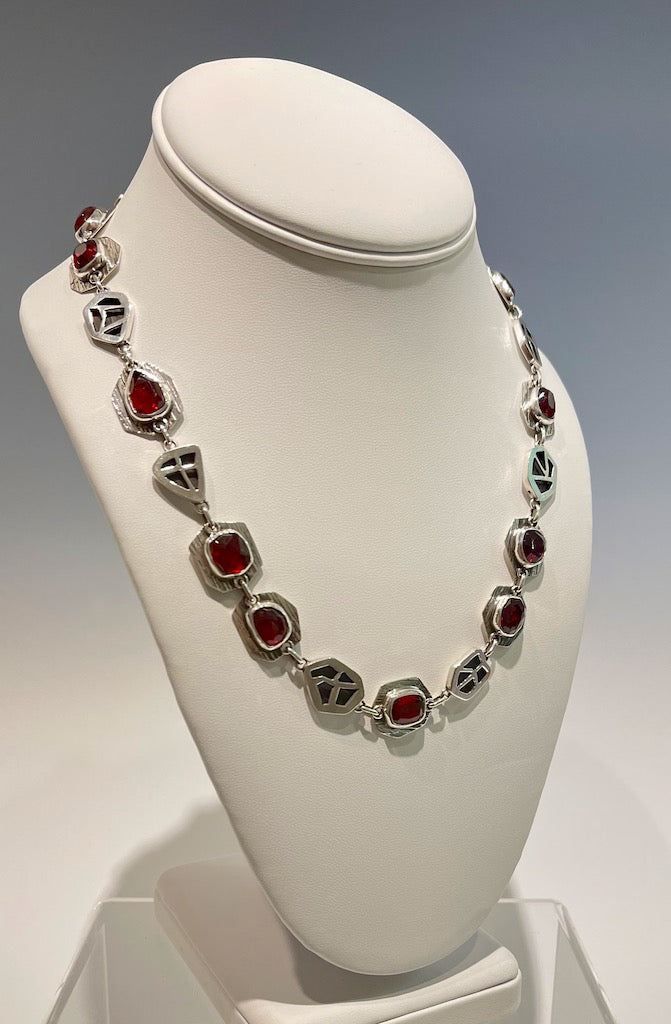FACETED GARNET AND HOLLOW FORM STERLING SILVER NECKLACE NM372N