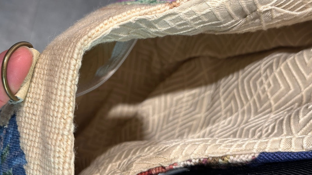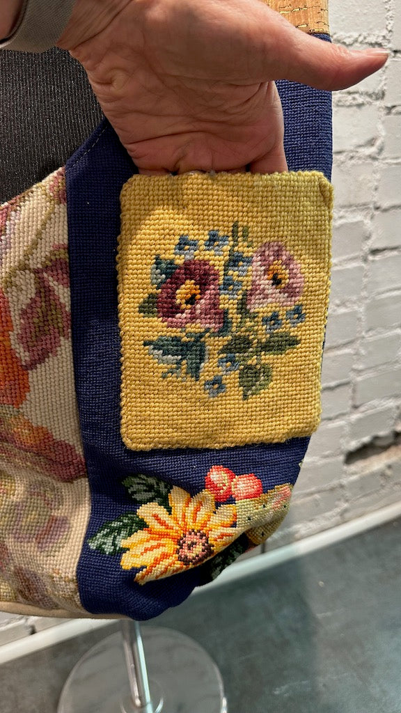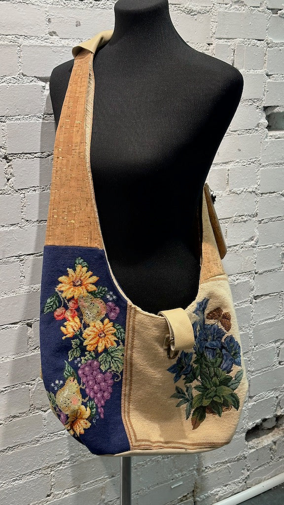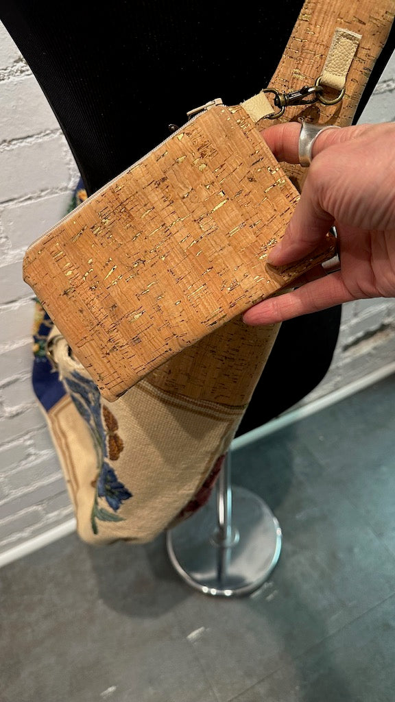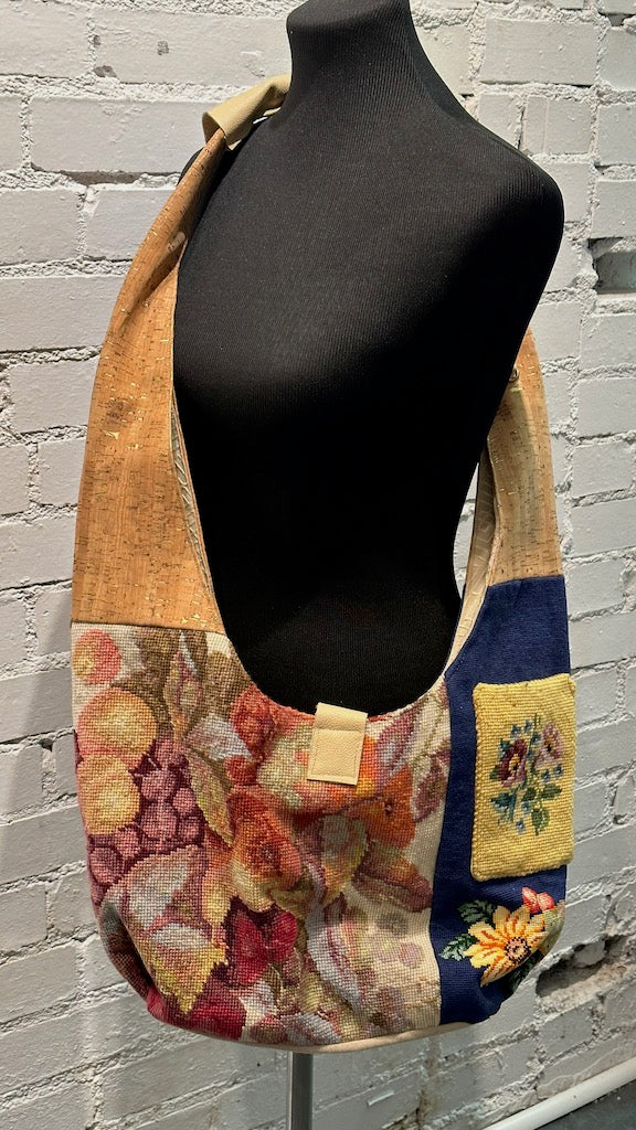 This handbag has been handcrafted using vintage tapestries and fabric which create a fine wearable art crossbody bag. Inner zipper pocket for convenience. Each one is one of a kind. Soft deer suede on top of strap for incredible comfort along with a detachable handmade fabric flower pin.