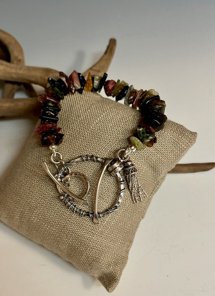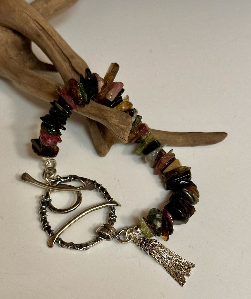 .925 TASSEL BRACELET W/TOURMALINE CHIPS BR113