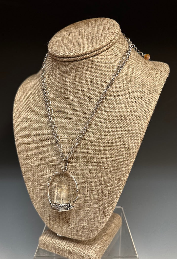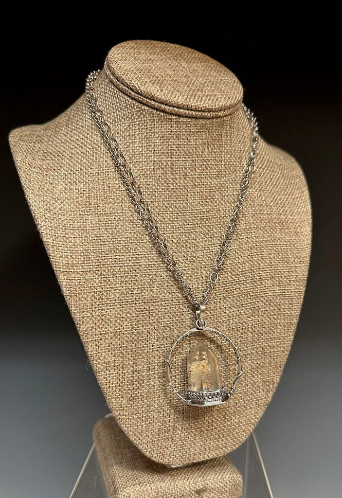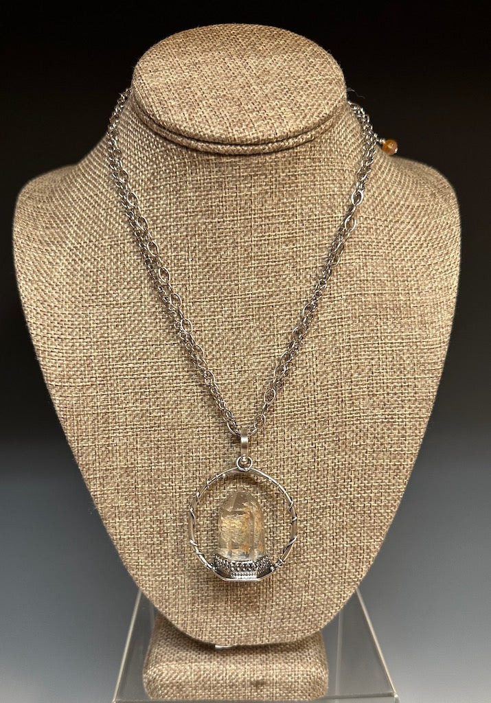 .925 LODALITE QUARTZ PT. MYSTIC PENDANT ON STERLING SILVER DOULBE CHAIN BR105