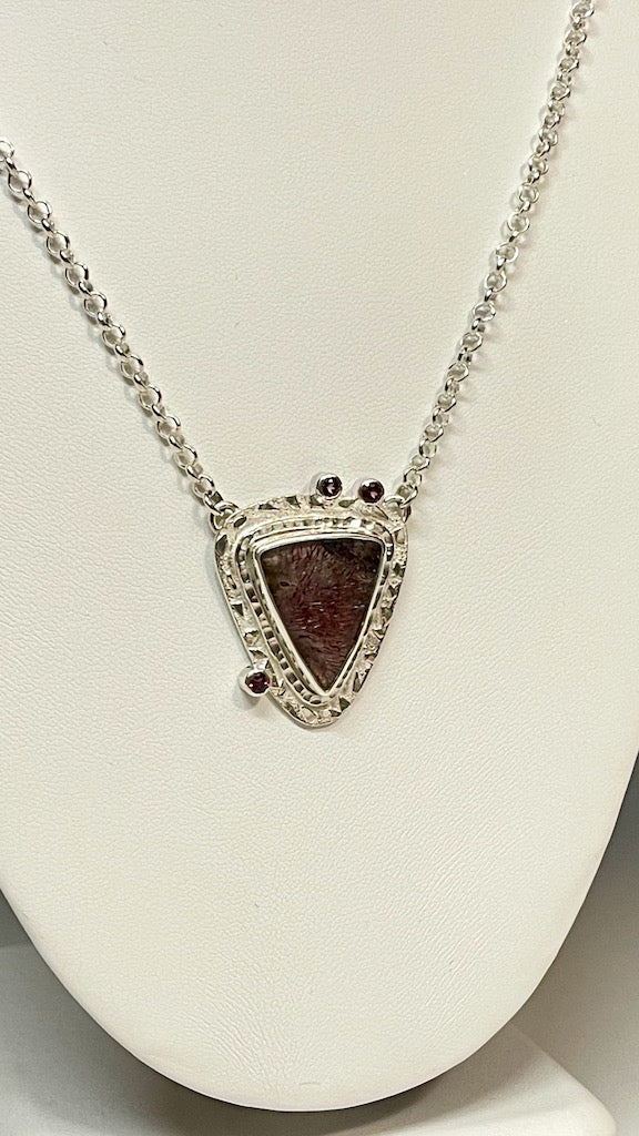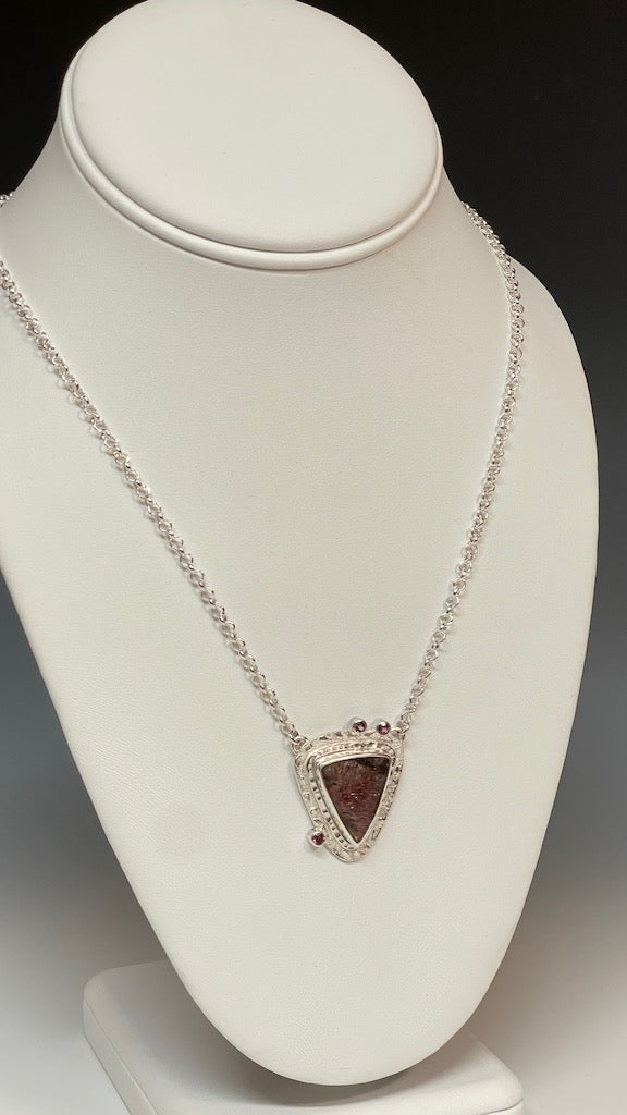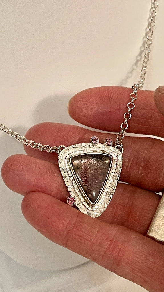 CACOXENITE (SUPER SEVEN) AND PINK GARNET NECKLACE - NM424N