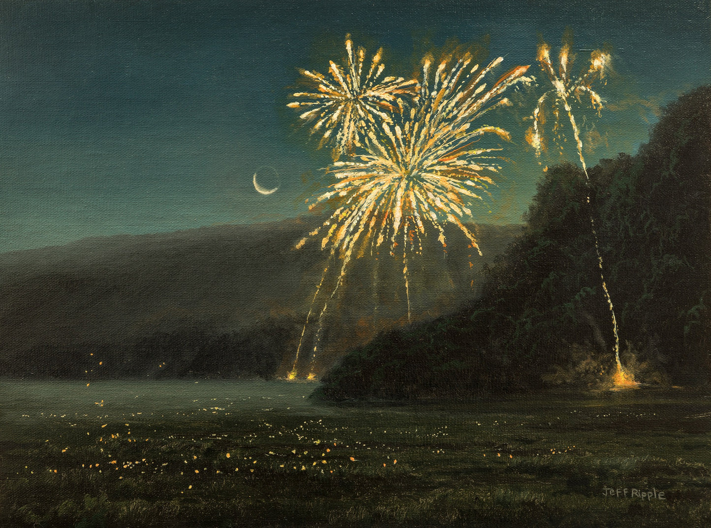 "Study for Mountain Light Show, July 4” Original Framed Oil Painting