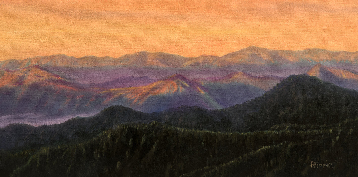"Autumn Light and Ridgeline Shadows at Daybreak" Original Framed Oil Painting