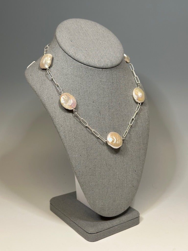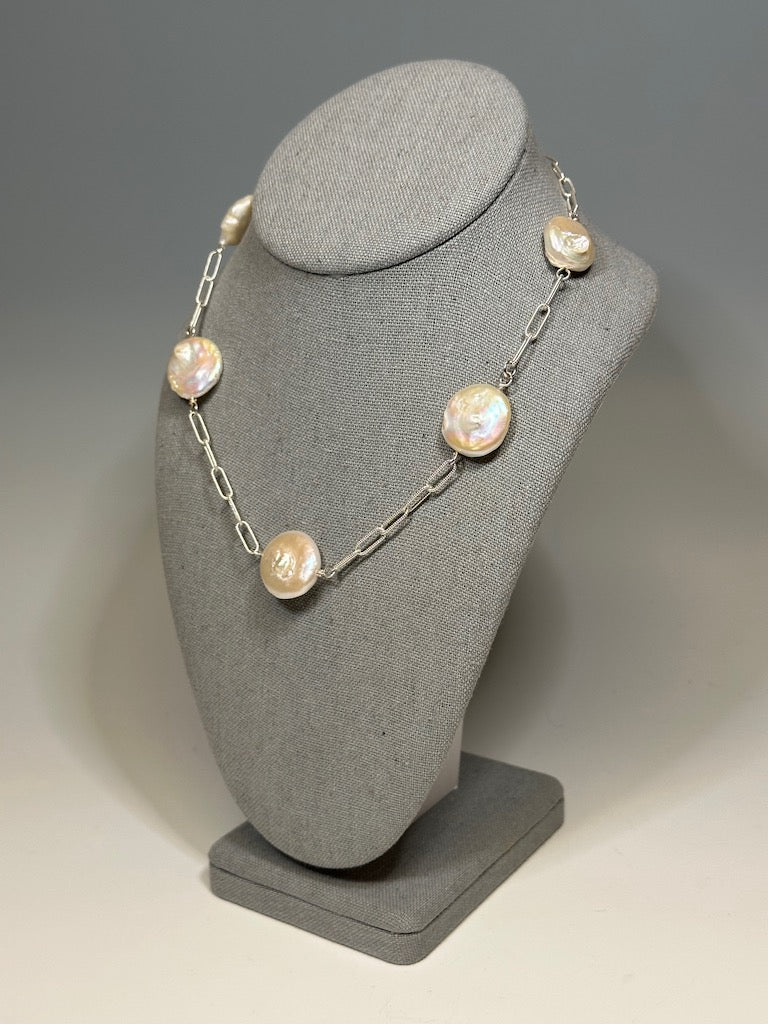 FRESH WATER DOLLAR PEARLS WITH STERLING SILVER NECKLACE LCN580