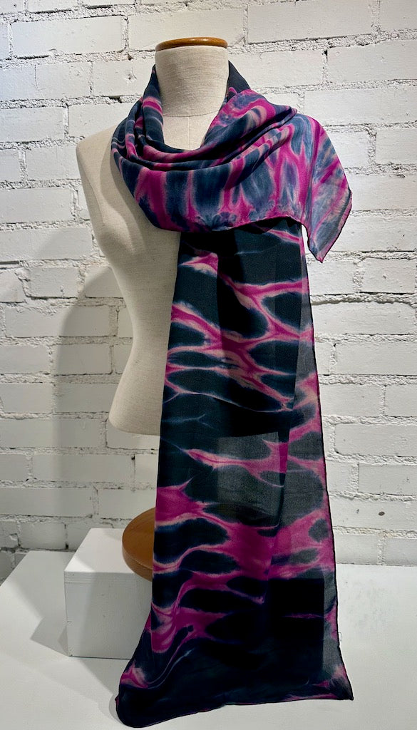 HAND DYED 100% SILK CREPE DE CHINE SHIBORI SCARF F284