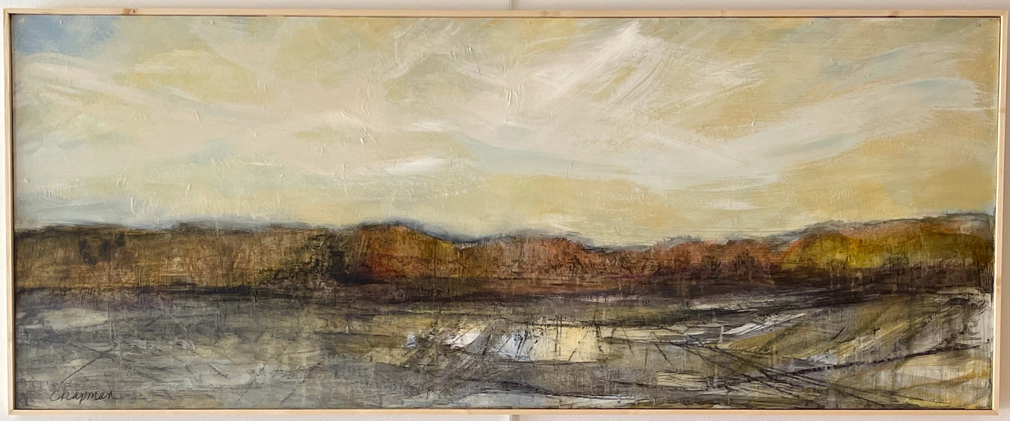 Original Charcoal and Acrylic Wash Painting on wood panel with custom shadow box frame.