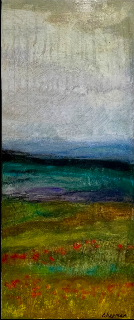 "FIELD OF POPPIES" MIXED MEDIA ON WOOD PANEL/FRAMED