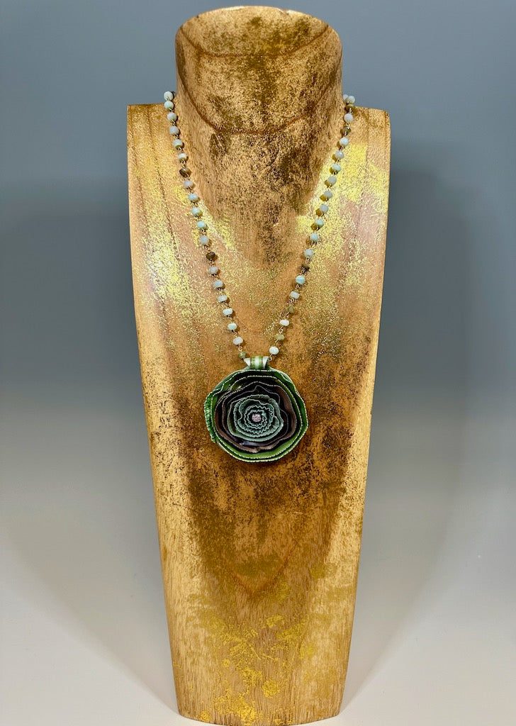 RIBBON EFFECT POLYMER CLAY NECKLACE WITH PERUVIAN OPAL ROSARY CHAIN NECKLACE DKPCN711